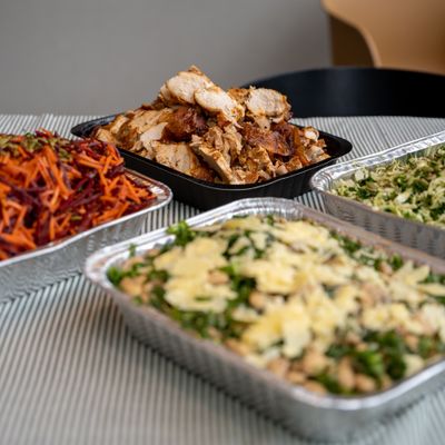 Build your own bowl with these options - pick as many or as little as you like Mains - Free Range Festive Rosemary Garlic Lemon Roasted Chicken - No Allergens Vegan Bang Bang Cauliflower - Allergens: Soy (Soy Milk), Classic Pork Belly with Apple Gravy - No Allergens, Sides - Festive Curried Broccoli & Chickpea Salad - Allergens: Sesame Seeds, Coconut Slaw - Allergens: Coconut, Christmas Herbs & Citrus Smashed Potatoes - No Allergens Citrus Crunch Power Salad - Allergens: Almonds & Dairy (Milk)